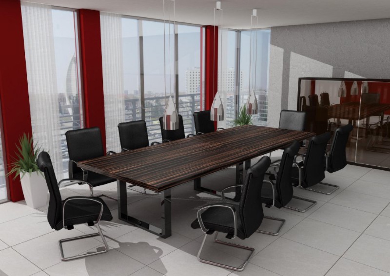 Stoły konferencyjne z systemu Egos nawiązują do klasycznych linii mebli ale w nowocześniejszej odsłonie. Blaty o grubości 50mm pokryte okleiną naturalną w odcieniach orzech lub heban podkreślają prestiż i elegancję miejsca spotkania. Stelaże stołów są wykonane z profili aluminiowych lakierowanych na czarny kolor w połysku.